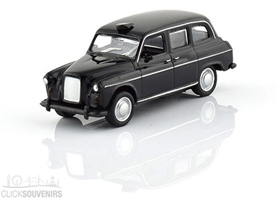 A die cast metal black taxi cab replica model with pull back and go action wheels. A fantastic addition to any collection of miniature cars.