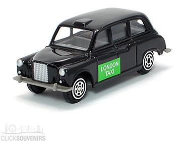 Die cast metal black taxi models are a great souvenir idea for presents from England. With moving wheel action.