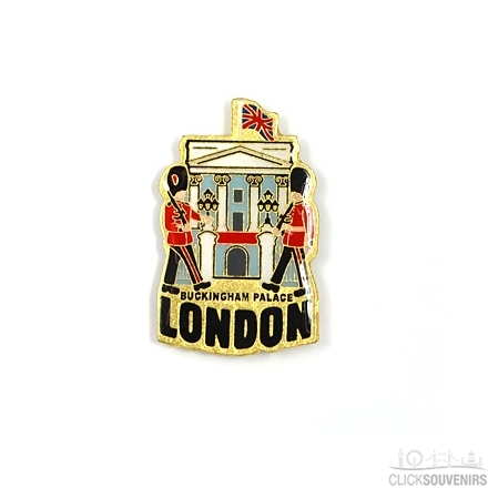 This is a London souvenir metal fridge magnet featuring Buckingham Palace.