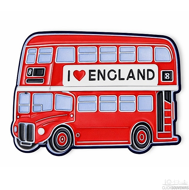 Large wooden fridge Magnet with a colourful image of a red double-decker bus. Makes a great London souvenir.
