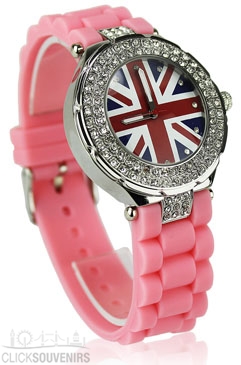 This water-resistant Union Jack Watch with diamantes looks stunning with its pink plasteramic strap and diamante markers. It has quartz movement and a face diameter of 4cm.